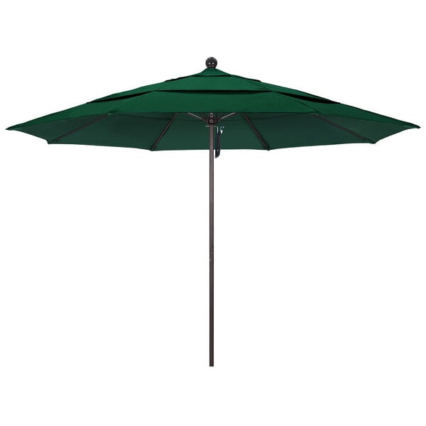 California Umbrella ALTO 118 SUNBRELLA 1A Venture 11' Round Pulley Lift Umbrella with 1 1/2" Bronze Aluminum Pole - Sunbrella 1A Canopy - Forest Green Fabric