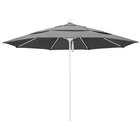Keep your decks, outdoor dining areas, or pool-side patios shaded with this California Umbrella ALTO 118 SUNBRELLA 1A Venture 11' round pulley lift umbrella with 1 1/2" matte white aluminum pole. An essential addition to commercial environments, the Venture series offers umbrellas that are created with superior materials and exude a classic, sophisticated appearance. This umbrella features a 1 1/2" thick, double wall matte white aluminum pole with sleek, stainless steel hardware for a robust foundation. Its 1/2" thick, high-density fiberglass ribs bend with the wind without snapping or breaking, yet provide excellent support for the canopy. In addition, the double wind vent allows for sufficient air flow to ensure stability and prevent the umbrella from moving with strong wind gusts. The Sunbrella fabric is water-resistant but not water-proof and is not intended for use in wet conditions. During inclement weather, please store umbrellas in a dry location or cover with a protective umbrella cover sold separately.