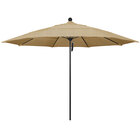 California Umbrella ALTO 118 SUNBRELLA 2A Venture 11' Round Pulley Lift Umbrella with 1 1/2" Black Aluminum Pole - Sunbrella 2A Canopy - Linen Sesame Fabric