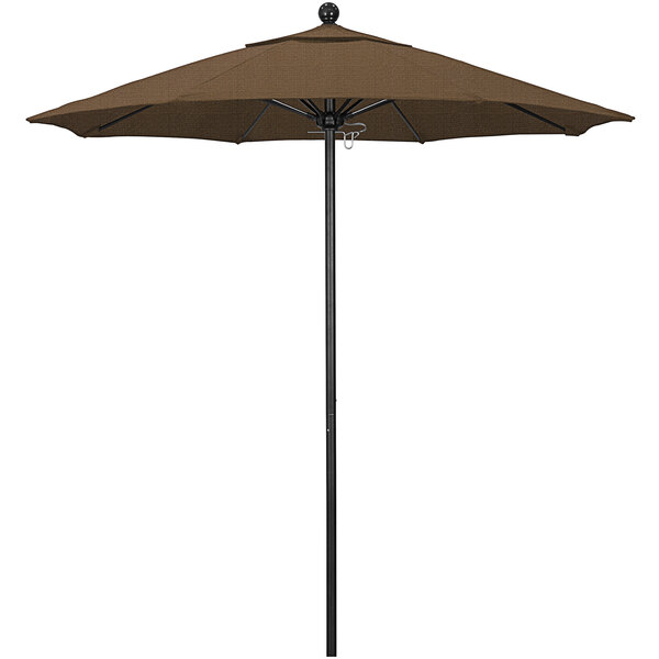California Umbrella ALTO 758 OLEFIN Venture 7 1/2' Round Push Lift Umbrella with 1 1/2" Black Aluminum Pole - Olefin Canopy - Woven Sesame Fabric