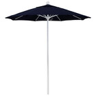 Keep your decks, outdoor dining areas, or pool-side patios shaded with this California Umbrella ALTO 758 OLEFIN Venture 7 1/2' round push lift umbrella with 1 1/2" matte white aluminum pole. An essential addition to commercial environments, the Venture series offers umbrellas that are created with superior materials and exude a classic, sophisticated appearance. This umbrella features a 1 1/2" thick, double wall matte white aluminum pole with sleek, stainless steel hardware for a robust foundation. Its 1/2" thick, high-density fiberglass ribs bend with the wind without snapping or breaking, yet provide excellent support for the canopy. In addition, the single wind vent allows for sufficient air flow to ensure stability and prevent the umbrella from moving with strong wind gusts. The Olefin fabric is water-resistant but not water-proof and is not intended for use in wet conditions. During inclement weather, please store umbrellas in a dry location or cover with a protective umbrella cover sold separately.