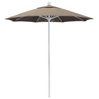 Keep your decks, outdoor dining areas, or pool-side patios shaded with this California Umbrella ALTO 758 SUNBRELLA 1A Venture 7 1/2' round push lift umbrella with 1 1/2" matte white aluminum pole. An essential addition to commercial environments, the Venture series offers umbrellas that are created with superior materials and exude a classic, sophisticated appearance. This umbrella features a 1 1/2" thick, double wall matte white aluminum pole with sleek, stainless steel hardware for a robust foundation. Its 1/2" thick, high-density fiberglass ribs bend with the wind without snapping or breaking, yet provide excellent support for the canopy. In addition, the single wind vent allows for sufficient air flow to ensure stability and prevent the umbrella from moving with strong wind gusts. The Sunbrella fabric is water-resistant but not water-proof and is not intended for use in wet conditions. During inclement weather, please store umbrellas in a dry location or cover with a protective umbrella cover sold separately.