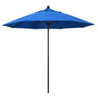 Keep your decks, outdoor dining areas, or pool-side patios shaded with this California Umbrella ALTO 908 OLEFIN Venture 9' round push lift umbrella with 1 1/2" bronze aluminum pole. An essential addition to commercial environments, the Venture series offers umbrellas that are created with superior materials and exude a classic, sophisticated appearance. This umbrella features a 1 1/2" thick, double wall bronze aluminum pole with sleek, stainless steel hardware for a robust foundation. Its 1/2" thick, high-density fiberglass ribs bend with the wind without snapping or breaking, yet provide excellent support for the canopy. In addition, the single wind vent allows for sufficient air flow to ensure stability and prevent the umbrella from moving with strong wind gusts. The Olefin fabric is water-resistant but not water-proof and is not intended for use in wet conditions. During inclement weather, please store umbrellas in a dry location or cover with a protective umbrella cover sold separately.