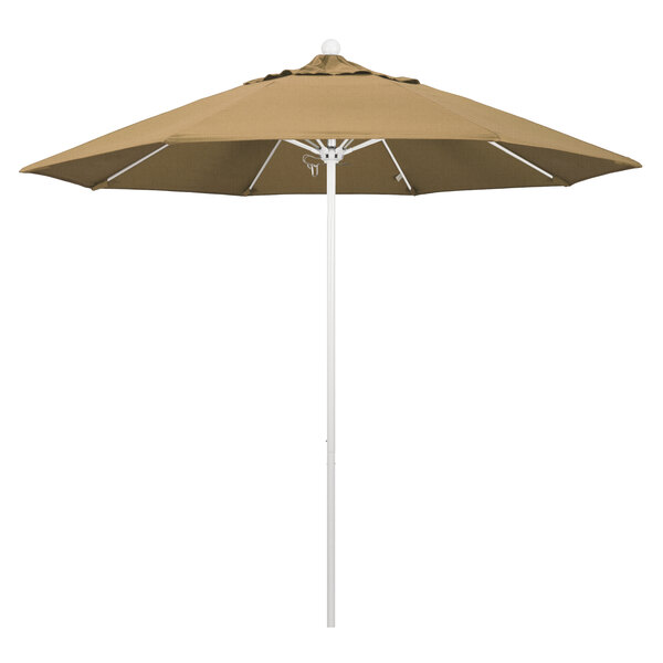California Umbrella ALTO 908 OLEFIN Venture 9' Round Push Lift Umbrella with 1 1/2" Matte White Aluminum Pole - Olefin Canopy - Straw Fabric