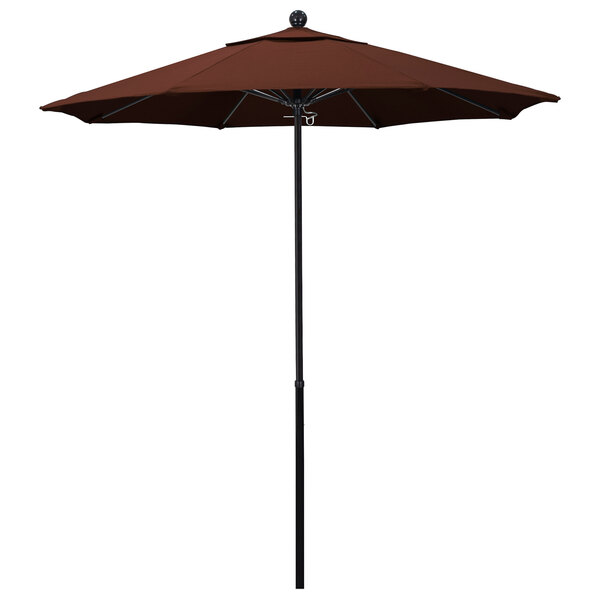California Umbrella EFFO 758 SUNBRELLA 2A Oceanside 7 1/2' Round Push Lift Umbrella with 1 1/2" Fiberglass Pole - Sunbrella 2A Canopy - Bay Brown Fabric