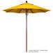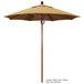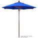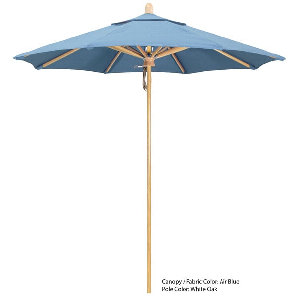 Keep your decks, outdoor dining areas, or pool-side patios shaded with this California Umbrella FLEX 758 SUNBRELLA 1A Sierra 7 1/2' round pulley lift umbrella with 1 1/2" fiberglass pole. Traditional and timeless, the Sierra series offers umbrellas that add warmth and aesthetic to any area. This umbrella features a 1 1/2" thick fiberglass pole with a wood-look finish to brighten up dining areas and lend a Caribbean beach feel. It's accented by sleek, stainless steel hardware for a refined appearance. The 1/2" thick, high-density fiberglass ribs bend with the wind without snapping or breaking, yet provide excellent support for the canopy. The solid yet lightweight fiberglass material is also resistant to moisture, corrosion, impact, splintering, and cracking for unmatched longevity. Furthermore, the single wind vent allows for sufficient air flow to ensure stability and prevent the umbrella from moving with strong wind gusts.
