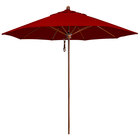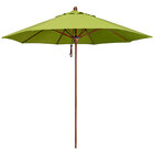 California Umbrella Lodge Series 9' Pulley Lift Umbrella with 1 1/2" Simulation Wood Aluminum Pole - Sunbrella 2A Canopy - Macaw Fabric
