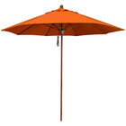 Keep your decks, outdoor dining areas, or poolside patios shaded with this California Umbrella Lodge Series 9' macaw pulley lift umbrella with 1 1/2" simulation wood aluminum pole. This umbrella features a 1 1/2" thick aluminum pole with a simulation wood finish, giving it a classic wooden look without requiring the upkeep. The aluminum pole uses sleek, stainless steel hardware for a robust foundation, and the umbrella's high-density fiberglass ribs bend with the wind without snapping or breaking, providing excellent support to the canopy. Plus, the umbrella's 9' size has sufficient area coverage, providing multiple guests with relief from the sun's rays. The Sunbrella fabric is water-resistant but not water-proof and is not intended for use in wet conditions. During inclement weather, please store umbrellas in a dry location or cover with a protective umbrella cover sold separately.