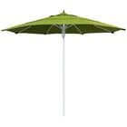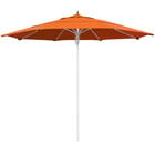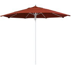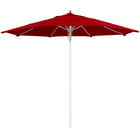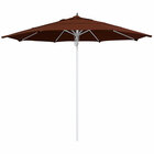 Keep your decks, outdoor dining areas, or poolside patios shaded with this California Umbrella Newport Series 11' bay brown pulley lift umbrella with 1 1/2" silver anodized aluminum pole. This umbrella features a 1 1/2" thick, double wall silver anodized aluminum pole with sleek, stainless steel hardware for a robust foundation. Its 1/2" thick, high-density fiberglass ribs bend with the wind without snapping or breaking, providing excellent support to the canopy. Plus, the umbrella's 11' size has sufficient area coverage, providing multiple guests with relief from the sun's rays. The Sunbrella fabric is water-resistant but not water-proof and is not intended for use in wet conditions. During inclement weather, please store umbrellas in a dry location or cover with a protective umbrella cover sold separately.