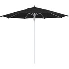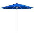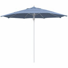 Keep your decks, outdoor dining areas, or poolside patios shaded with this California Umbrella Newport Series 11' navy pulley lift umbrella with 1 1/2" silver anodized aluminum pole. This umbrella features a 1 1/2" thick, double wall silver anodized aluminum pole with sleek, stainless steel hardware for a robust foundation. Its 1/2" thick, high-density fiberglass ribs bend with the wind without snapping or breaking, providing excellent support to the canopy. Plus, the umbrella's 11' size has sufficient area coverage, providing multiple guests with relief from the sun's rays. The Sunbrella fabric is water-resistant but not water-proof and is not intended for use in wet conditions. During inclement weather, please store umbrellas in a dry location or cover with a protective umbrella cover sold separately.