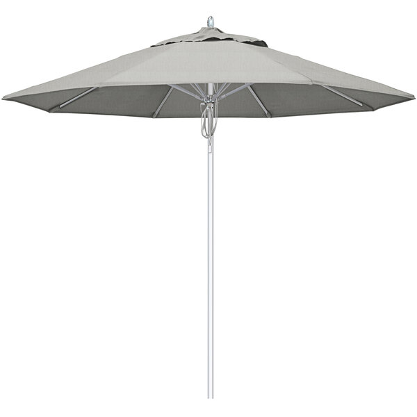 Keep your decks, outdoor dining areas, or poolside patios shaded with this California Umbrella Newport Series 9' granite pulley lift umbrella with 1 1/2" silver anodized aluminum pole. This umbrella features a 1 1/2" thick, double wall silver anodized aluminum pole with sleek, stainless steel hardware for a robust foundation. Its high-density fiberglass ribs bend with the wind without snapping or breaking, providing excellent support to the canopy. Plus, the umbrella's 9' size has sufficient area coverage, providing multiple guests with relief from the sun's rays. The Sunbrella fabric is water-resistant but not water-proof and is not intended for use in wet conditions. During inclement weather, please store umbrellas in a dry location or cover with a protective umbrella cover sold separately.
