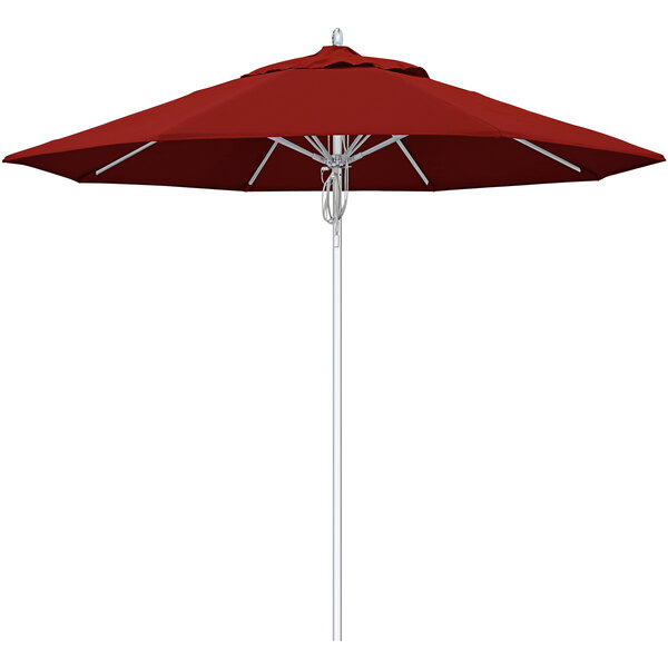 California Umbrella Newport Series 9' Pulley Lift Umbrella with 1 1/2" Silver Anodized Aluminum Pole - Sunbrella 2A Canopy - Jockey Red Fabric