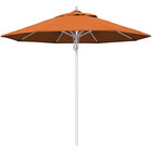 Keep your decks, outdoor dining areas, or poolside patios shaded with this California Umbrella Newport Series 9' tuscan pulley lift umbrella with 1 1/2" silver anodized aluminum pole. This umbrella features a 1 1/2" thick, double wall silver anodized aluminum pole with sleek, stainless steel hardware for a robust foundation. Its high-density fiberglass ribs bend with the wind without snapping or breaking, providing excellent support to the canopy. Plus, the umbrella's 9' size has sufficient area coverage, providing multiple guests with relief from the sun's rays. The Sunbrella fabric is water-resistant but not water-proof and is not intended for use in wet conditions. During inclement weather, please store umbrellas in a dry location or cover with a protective umbrella cover sold separately.