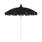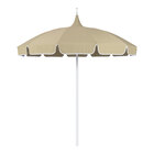 Keep your decks, outdoor dining areas, or poolside patios shaded with this California Umbrella Pagoda 8 1/2' round push lift umbrella with 1 1/2" silver aluminum pole. With a fun, distinct appearance, the Pagoda line will set your intimate outdoor eatery apart from the rest. This umbrella features a silver 2-piece, 1 1/2" thick anodized aluminum pole for a robust foundation. Additionally, the fiberglass ribs provide excellent support for the canopy, and help form the bold curves that create its distinguishing form.