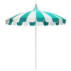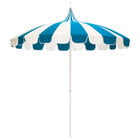 Keep your decks, outdoor dining areas, or pool-side patios shaded with this California Umbrella SMPT 852 SUNBRELLA 1 Pagoda 8 1/2' round push lift umbrella with 1 1/2" aluminum pole. With a fun, distinct, two-tone appearance, the Pagoda line will set your intimate outdoor eatery apart from the rest. This umbrella features a 1 1/2" thick aluminum pole for a robust foundation. Additionally, the fiberglass ribs provide excellent support for the canopy, and help form the bold curves that create its distinguishing form.