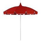 California Umbrella SMPT 852 SUNBRELLA 2 Pagoda 8 1/2' Round Push Lift Umbrella with 1 1/2" Aluminum Pole - Sunbrella 2A Canopy with Natural Braid - Jockey Red Fabric