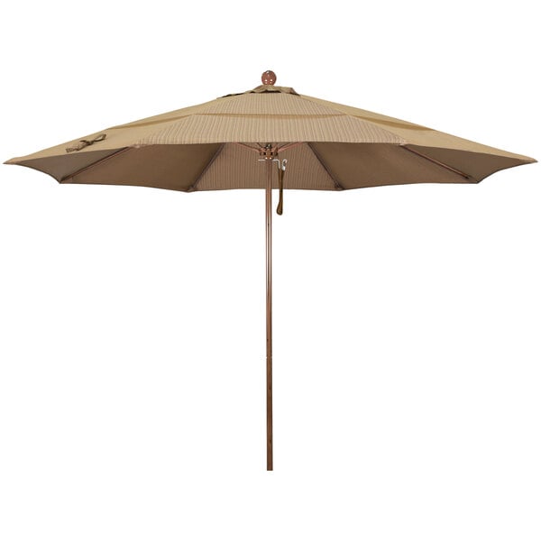 California Umbrella Venture Series 11' Pulley Lift Umbrella with 1 1/2" American Oak Aluminum Pole - Olefin Canopy - Terrace Sequoia Fabric
