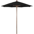 California Umbrella Venture Series 7 1/2' Push Lift Umbrella with 1 1/2" American Oak Aluminum Pole - Sunbrella 1A Canopy - Black Fabric