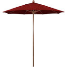 California Umbrella Venture Series 7 1/2' Push Lift Umbrella with 1 1/2" American Oak Aluminum Pole - Pacifica Canopy - Red Fabric