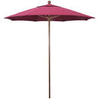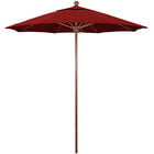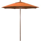 California Umbrella Venture Series 7 1/2' Tangerine Push Lift Umbrella with 1 1/2" American Oak Aluminum Pole - Sunbrella 2A Canopy