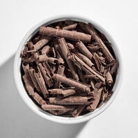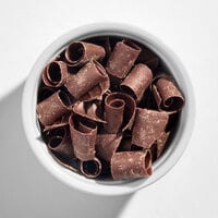 These chocolate flakes are perfect for decorating cakes, cookies, frozen desserts, and beverages in your establishment. Because they're pre-shaped, these flakes cut down on preparation time and the need for skilled labor in your kitchen, saving you money while still allowing you to add a high-end garnish to your sweet treats. This product lends an eye-catching finish to scoops of ice cream, mousse, frosted cupcakes, and a variety of classic pastries that could use a visual upgrade. And they don't just look great - the rich, complex flavor of these premium dark chocolate flakes will help set your menu apart from the competition!