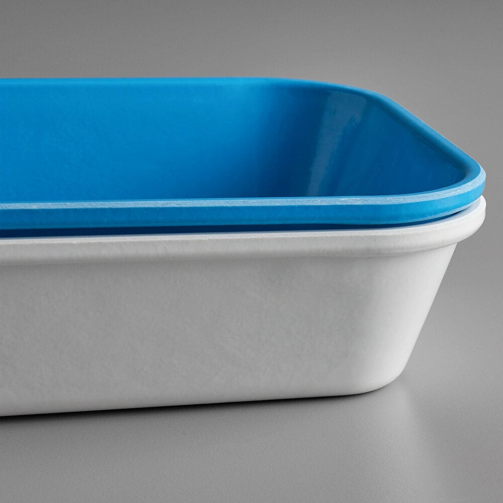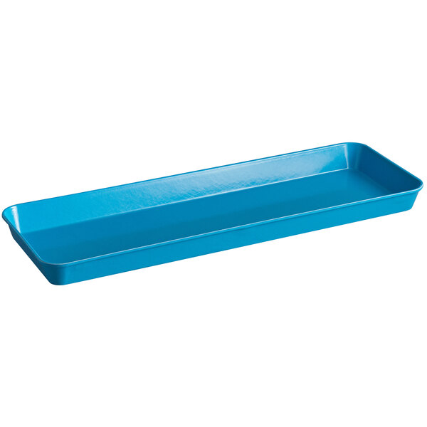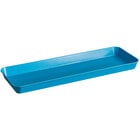 This Cambro 10302MT142 10" x 30" blue fiberglass market pan is the perfect way to display your delicious appetizers, deli meats, or prepared salads. The pan is made of durable, reinforced high-impact fiberglass, making it stain and odor resistant. It does not oxidize like traditional aluminum pans, and it also dries faster due to its Dri-Stak stacking lug separators. At 30" long, this pan is optimal for displaying your offerings side by side, and its blue color provides an elegant and attractive look.