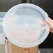 Lock in freshness with this Cambro translucent round storage lid! This snap-on lid is made to fit Cambro 12, 18, and 22 qt. round translucent storage containers. Its tight seal works to keep foods and ingredients uncontaminated and organized for storage or transport! Your customers will truly appreciate the fresh taste of ingredients after they are tightly stored under this Cambro lid.