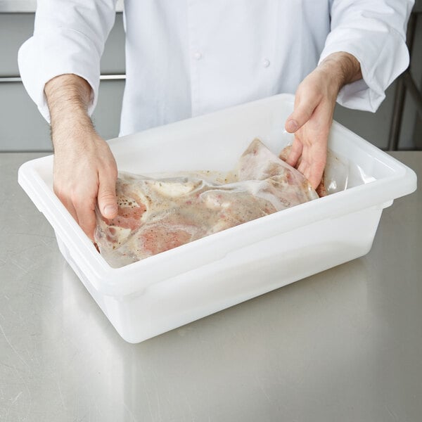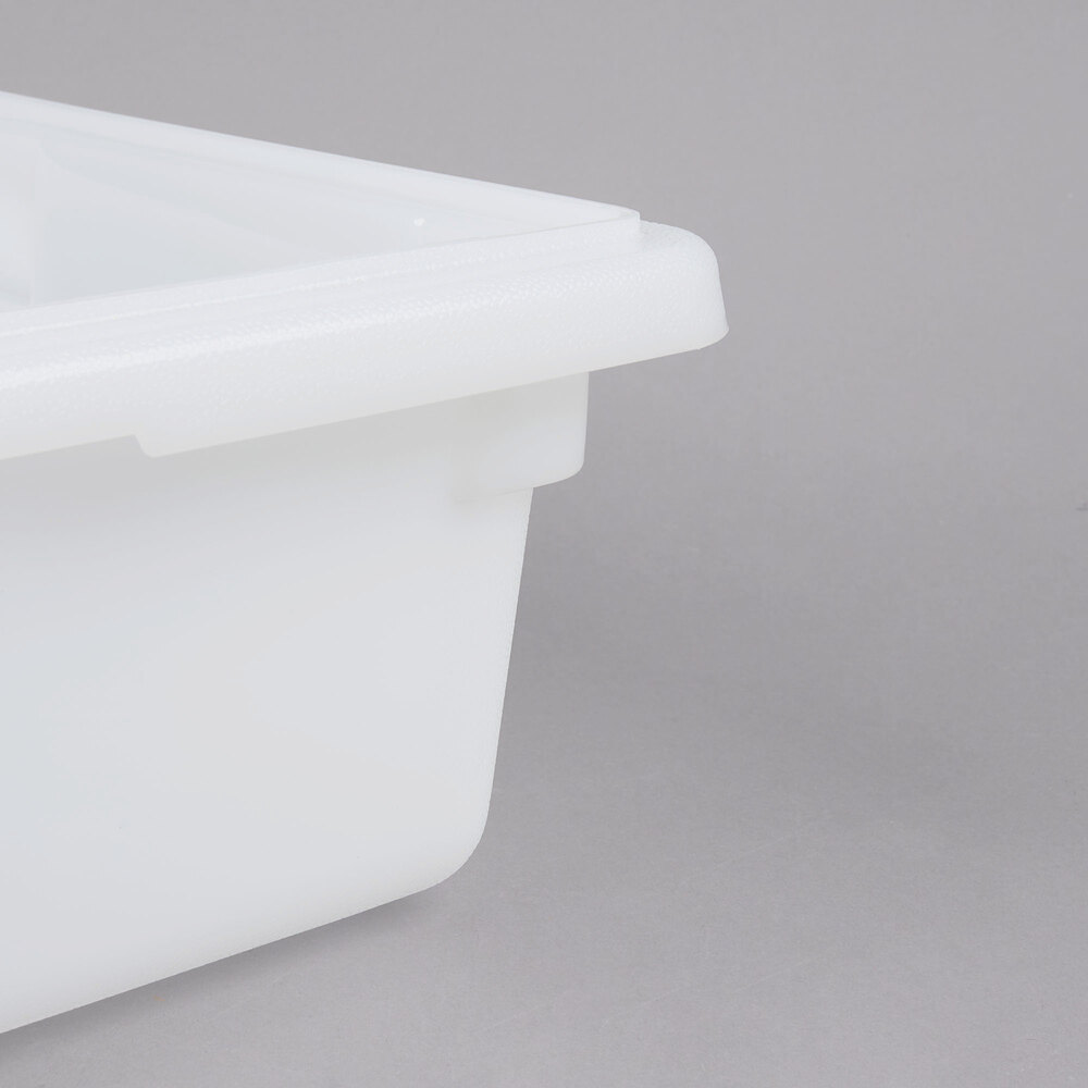This 12"X18"X6" Cambro box works great for our food storage needs. Cambro brand has always lasted the longest out of any other brands and takes a beating. The only issue I have with these is that when purchased new, they have a label sticker that is extremely difficult to remove. It takes goo gone or a blow dryer to remove. We tried running it through our high temp dishwasher and that didn't help. Additionally, the handles to pick up the storage box are sharp in some areas when new. We gently rubbed them with sand paper to avoid our employees getting cut. Something to double check before putting into use. Besides these two issues we love our Cambro boxes!