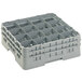 This Cambro 16S534151 Soft Gray customizable 16 compartment full size Camrack has everything you need for washing, storing, and transporting large cocktail glasses, delicate wine stems with oversize bowls, and other items with a diameter of up to 4 3/8", standing up to 6 1/8" in height. Included is (1) gray 16E1 extender, (1) gray 16E5 extender and (1) soft gray-colored BR258 base rack.