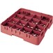 Ships free withThis Cambro 16S800-416 cranberry customizable 16 compartment full size Camrack has everything you need for washing, storing, and transporting large cocktail glasses, delicate wine stems with oversize bowls, and other items with a diameter of up to 4 3/8", standing up to 8 1/2" in height. Included is (1) gray 16E1 extender, (3) gray 16E2 extenders, and (1) red-colored BR258 base rack.