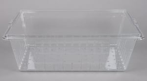 With the 26" x 18" Cambro Camwear® 18268CLRCW135 8" deep clear food box colander, you'll be able to safely and easily drain fruits and vegetables, thaw meat or poultry, or store seafood on ice! Its durable and perforated design is sure to simplify your kitchen tasks, and its generous 26" x 18" size is guaranteed to serve your kitchen reliably as bulk food storage.