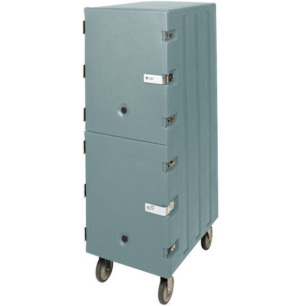 Keep hot food hot or cold food cold with the Cambro 1826DBCSP401 slate blue double compartment food storage box Camcart® storage carrier. Featuring tamper-resistant hardware, it's perfect for storing and transporting bulk food for use in any high security facility. This Camcart® storage carrier can hold up to (24) 18" x 26" food storage boxes.