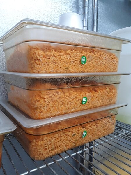 This Amber High Heat Food pan by Cambro is a great storage container as well for our team to place sauce container lids for routine cleaning in an easily identifiable bin.