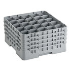 This Cambro 25S900151 soft gray customizable 25 compartment full size Camrack is perfect for washing, storing, and transporting large diameter beverage glasses, red wine stems, goblets, most rocks glasses, and other items with a diameter of up to 3 7/16", standing up to 9 3/8" in height. Included is (1) gray 25E1 extender, (2) gray 25E2 extender, (1) gray 25E5 extender and (1) soft gray BR258 base rack.