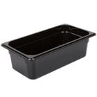 This amber Cambro 34HP150 H-Pan™ 4" deep, 1/3 size high heat plastic food pan is perfect for holding high heat and freezing foods in any commercial kitchen. It's built with strong, durable materials to withstand extreme temperatures from -40 to 375 degrees Fahrenheit and will help maintain your food's temperature after it's taken out of the oven or freezer. This high heat food pan's convenient, non-stick smooth interior surface increases yields and promotes easy cleaning. To aid in storage, transport, and create more usable space, this pan will even stack with similar items without wedging or sticking.