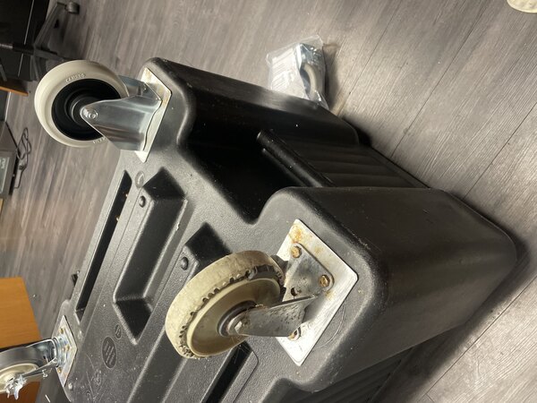 Nice replacement wheel. This OEM replacement includes 4 new bolts. This was nice because I ordered another set of aftermarket replacement wheels and they did not include the replacement bolts. These wheels fit on my ice caddy, but we’re much more difficult to get on.