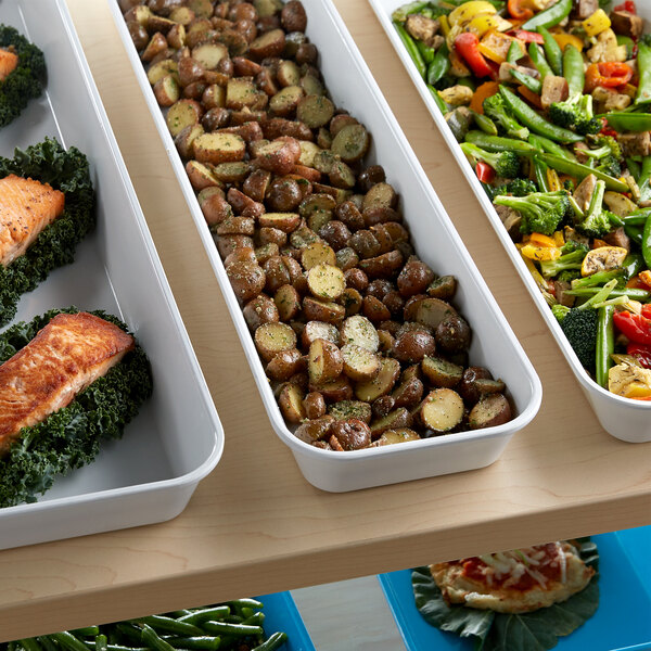 Attractively merchandise deli salads and bulk foods with this Cambro 6302MT148 7" x 30" white fiberglass market pan.