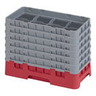 Cambro 8HS1114151 Soft Gray Camrack 8 Compartment 11 3/4" Half Size Glass Rack with 6 Extenders