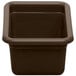 Make bussing your tables a breeze with this Cambro 912CBP131 Poly Cambox dark brown polyethylene utility box / undercounter bus tub! Perfect for the everyday operations of your restaurant or cafeteria, this utility box is an efficient way to clean up your dining area, allowing you to transport small loads of dirty dishes, glassware, and other items from the table back to the kitchen with ease. Its classic dark brown design combines with a durable, high-gloss polyethylene material to provide long-lasting reliability in any busy establishment, while its rigid construction makes it ideal for constant use.