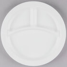 The Cambro 93CW401 slate blue Camwear® 9" three compartment plate is perfect for cafeterias, day care centers, and hospitals. Thanks to its various compartments, you can keep entrees and side dishes separate while you eat. In addition, its textured polycarbonate surface resists scratches, stains, and odors for long, consistent use.