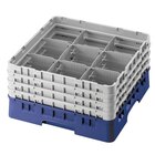 Cambro 9S318186 Navy Blue Camrack Customizable 9 Compartment 3 5/8" Glass Rack with 1 Extender