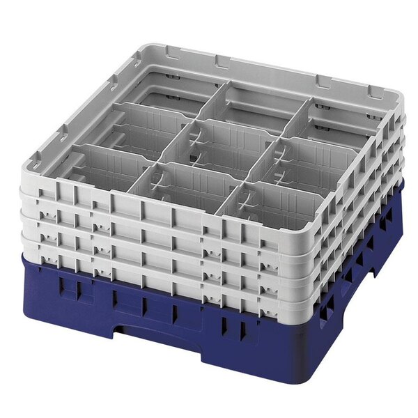 Cambro 9S638186 Navy Blue Camrack Customizable 9 Compartment 6 7/8" Glass Rack with 3 Extenders
