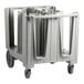 This dish caddy's convenient, adjustable 6 column design allows it to hold everything from small 4 5/8" plates to larger 13" charger plates or pasta dishes. It can handle heavy volume as well, with each column accommodating approximately 45-60 plates per stack.
