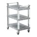 This cart includes three sturdy shelves to transport your supplies. They are made of stain-resistant polypropylene for easy clean up. Plus, each shelf can hold a full-sized dish rack or 2 standard bus boxes.