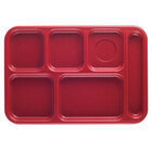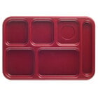 Cambro BCT1014416 Budget 10" x 14 1/2" Right Handed ABS Plastic Cranberry 6 Compartment Serving Tray - 24/Case