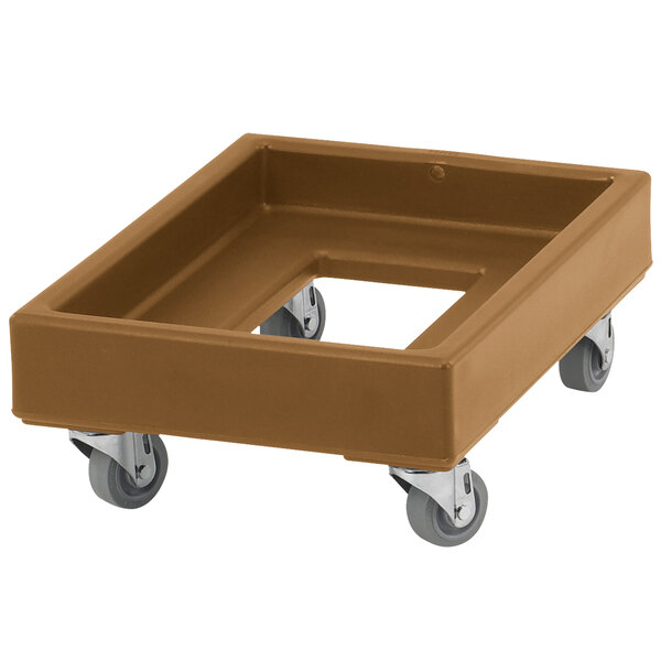 The Cambro CD1420157 coffee beige Camdolly 350 lb. milk crate dolly is an indispensable tool for schools, hospital cafeterias, assisted living communities, or any other location that receives bulk dairy shipments.