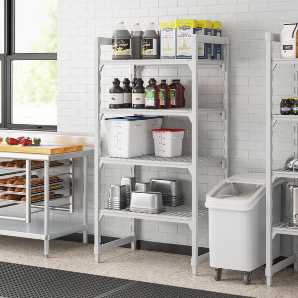 Effortlessly store your products with the Cambro Camshelving® Premium vented shelving unit with 4 shelves!