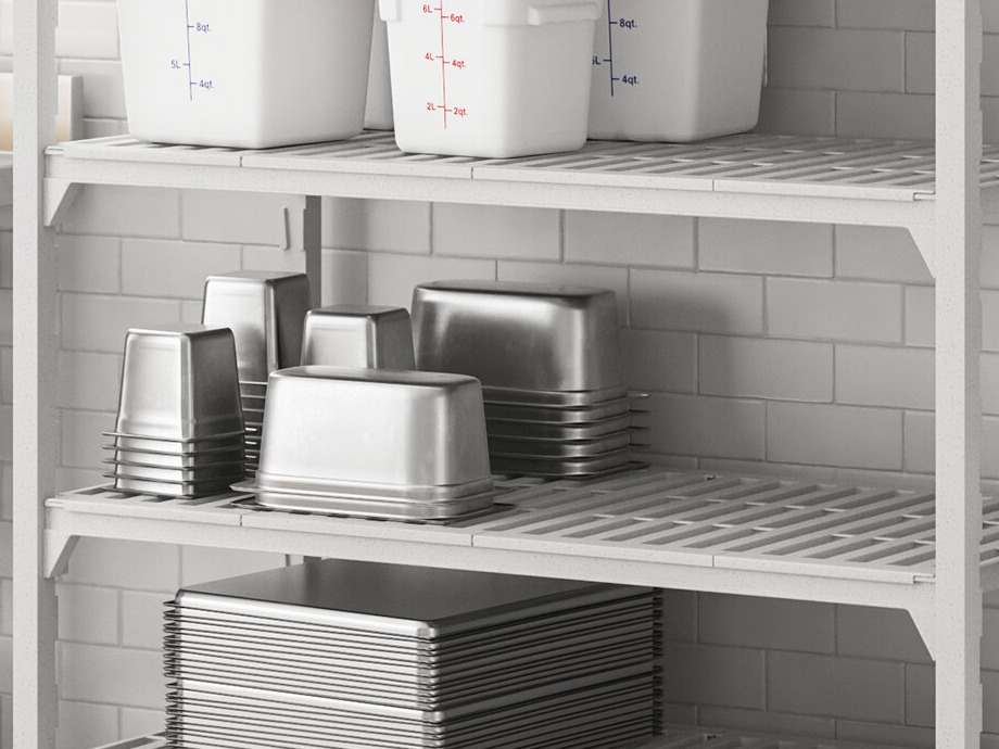 In addition, the vented shelf design promotes greater air circulation and product visibility which will come in handy in refrigerated storage applications.