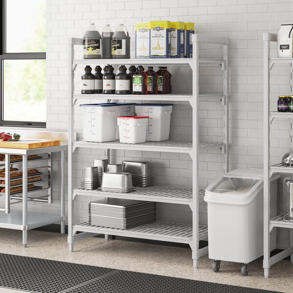 With vented shelves to provide optimum air flow and Camguard antimicrobial coating to keep stored items clean, this vented shelving system comes with all of the features you expect in a Camshelving® product. This shelving unit includes (4) 72" posts, (5) 24" x 48" shelves, 10 traverses, pre-installed post connectors and wedges, and matching dovetails. You'll have everything you need to start building this versatile and efficient shelving system right out of the box.