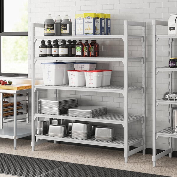 With vented shelves to provide optimum air flow and Camguard antimicrobial coating to keep stored items clean, this vented shelving system comes with all of the features you expect in a Camshelving® product. This shelving unit includes (4) 72" posts, (5) 24" x 60" shelves, 10 traverses, pre-installed post connectors and wedges, and matching dovetails. You'll have everything you need to start building this versatile and efficient shelving system right out of the box.